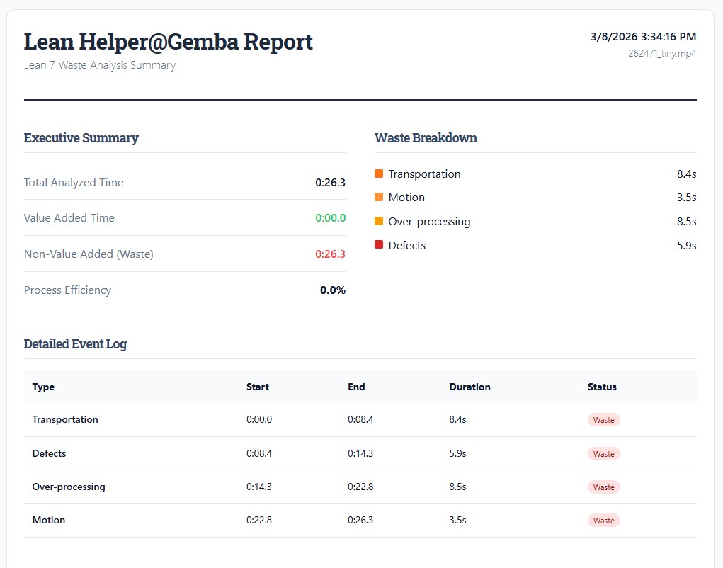 Lean Helper phát triển "Ứng dụng Lean 7 Waste Video Analyzer" nhằm giải quyết vấn đề này. Để sử dung đầy đủ chức năng, liên hệ: info@leanhelper.vn