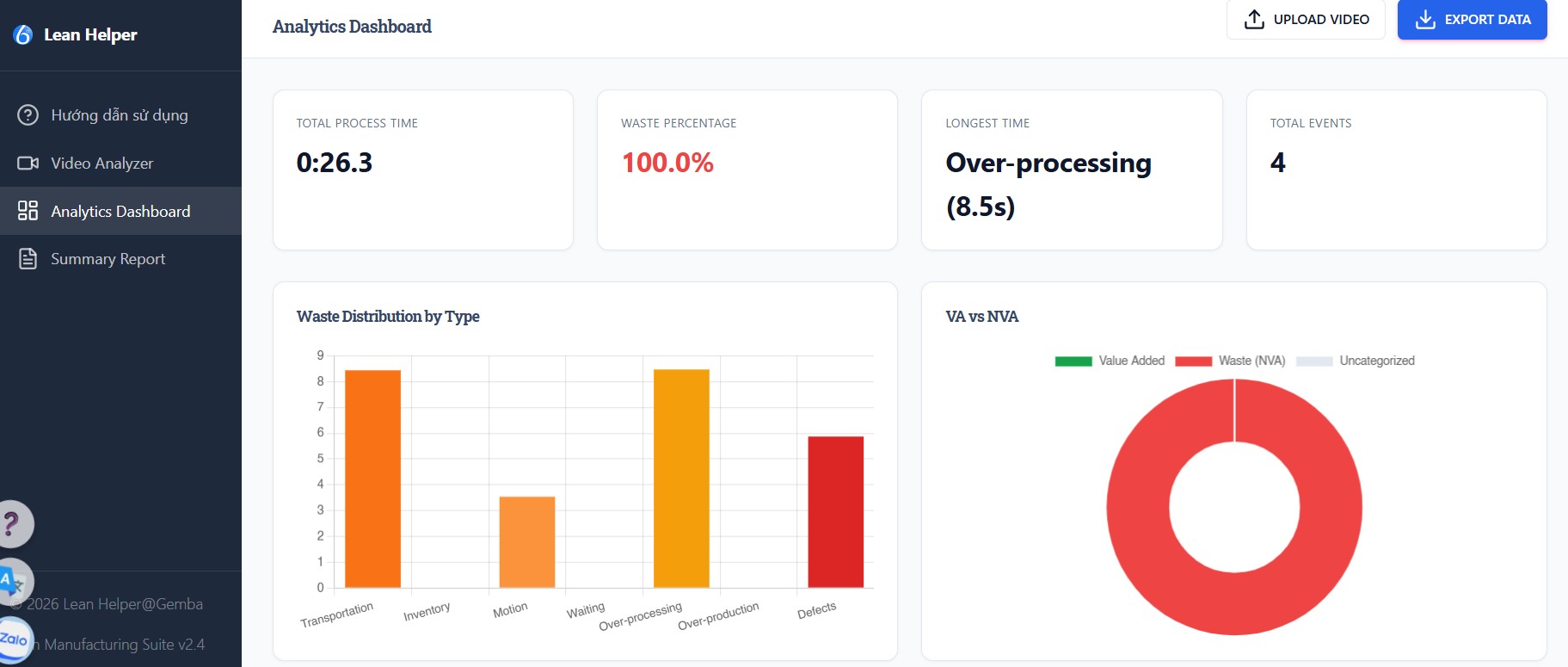 Lean Helper phát triển "Ứng dụng Lean 7 Waste Video Analyzer" nhằm giải quyết vấn đề này. Để sử dung đầy đủ chức năng, liên hệ: info@leanhelper.vn